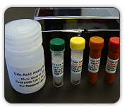 Uric Acid Assay Kit. Uric acid in serum is the end product of purine metabolism, and is cleared through the kidney by glomerular filtration. However, human often lacks the necessary enzyme called urate oxidase (Uricase), and therefore abnormal uric acid may be accumulated in blood. Recent evidences show the close association between serum uric acid and cardiovascular morbidity and mortality, especially among persons at high cardiovascular risk, including those with hypertension, diabetes and congestion heart failure. BioVision’s Uric Acid Assay Kit provides a convenient means for detecting uric acid in biological samples such as serum and urine. Pretreatment of samples are not required. Uric acid level can be measured using fluorometric (at Ex/Em = 535/587 nm) or colorimetric (at l = 570 nm) methods.